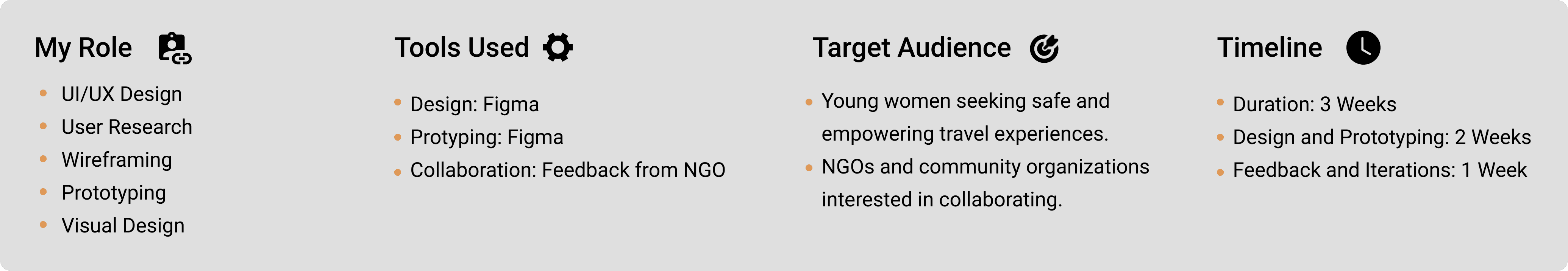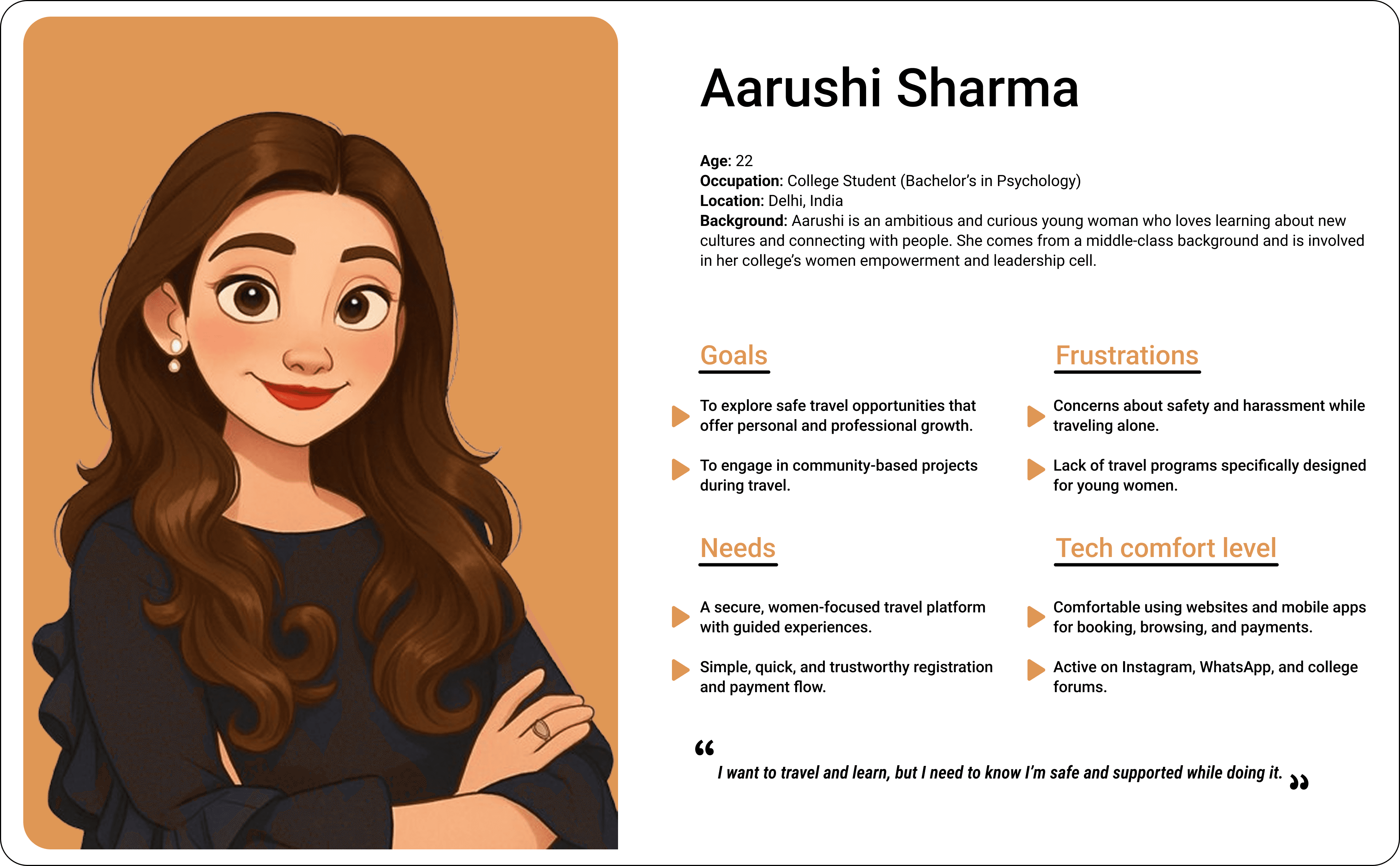 Competitive Analysis → Reviewed women travel websites and NGOs.